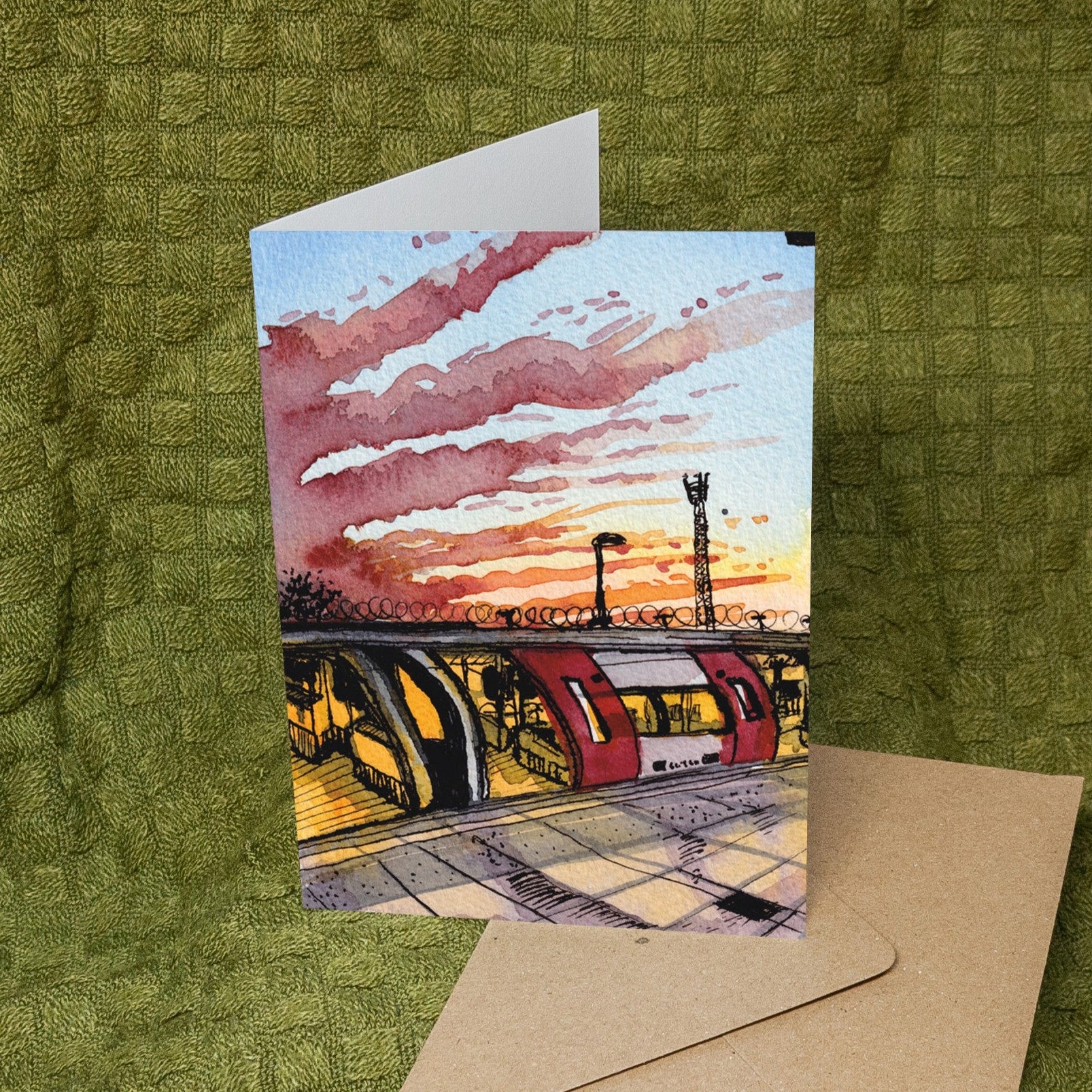 'Sunset over Underground Station' Card