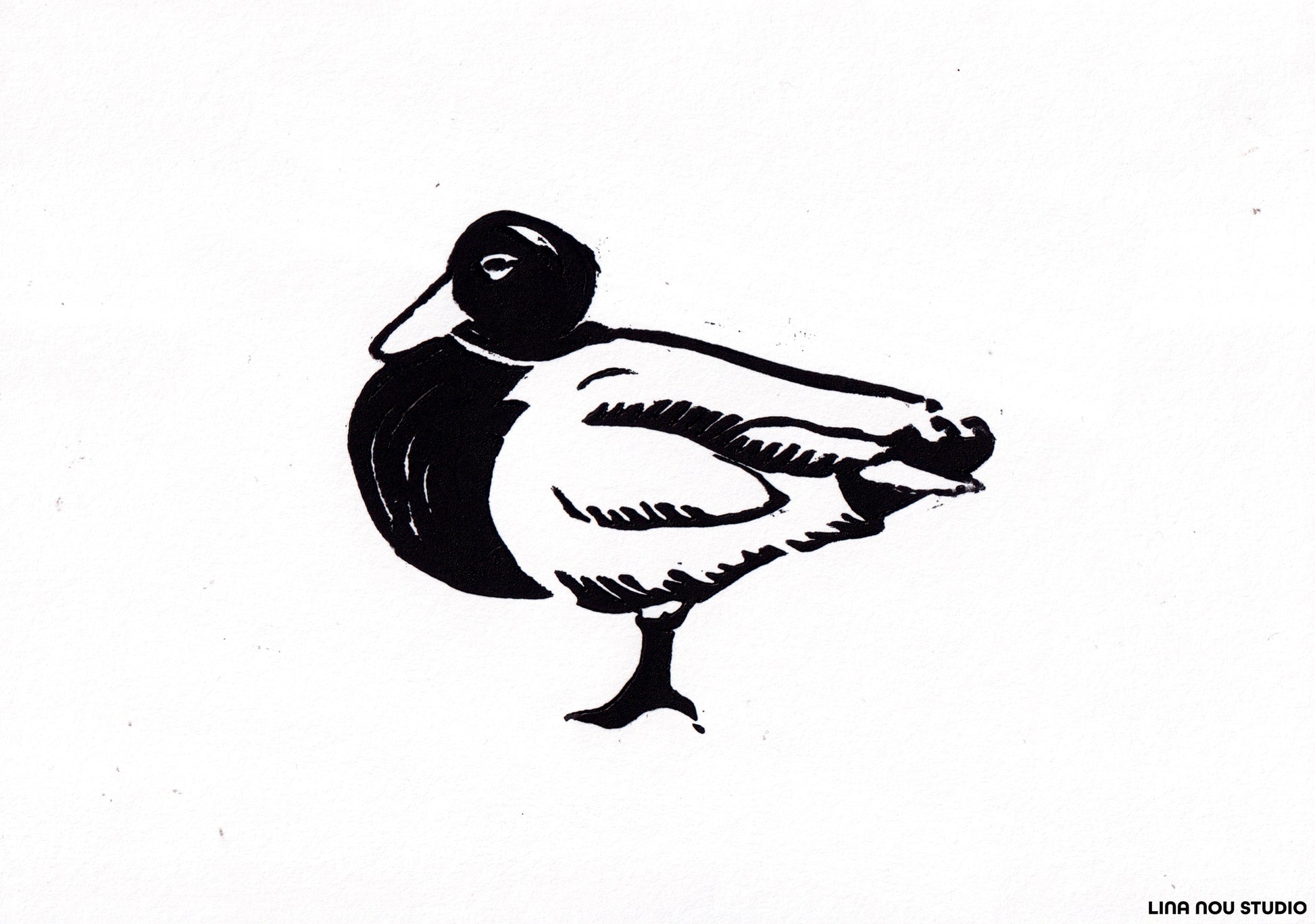 'Three Waterfowl: Duck' Lino Print (smooth paper)